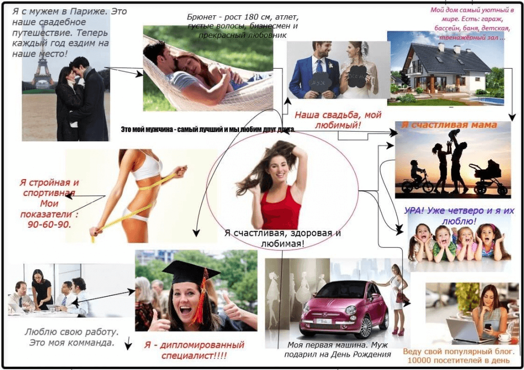 Вдохновиться на создание собственной карты желаний, целей или достижений позволяют удачные и верно составленные образцы.